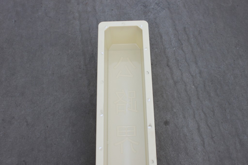 國家高速公路專用標準尺寸規(guī)格的水泥公路界界樁模具,采用ABS塑料以注塑加工方式一體成型。外表周邊均已長短不一加強筋設計,保證此水泥界樁模具的整體牢固度,在模具內(nèi)部則有標注“公路界”文字。