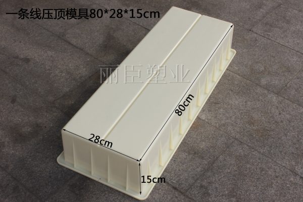 此款水泥壓頂模具主要采用ABS工程塑料材質,經過高溫注塑加工而成,以一條線壓頂為主,也由于其自身尺寸較長,為避免澆筑水泥壓頂時的破損幾率,更是在模具外圍增添了全方位加強筋設計。