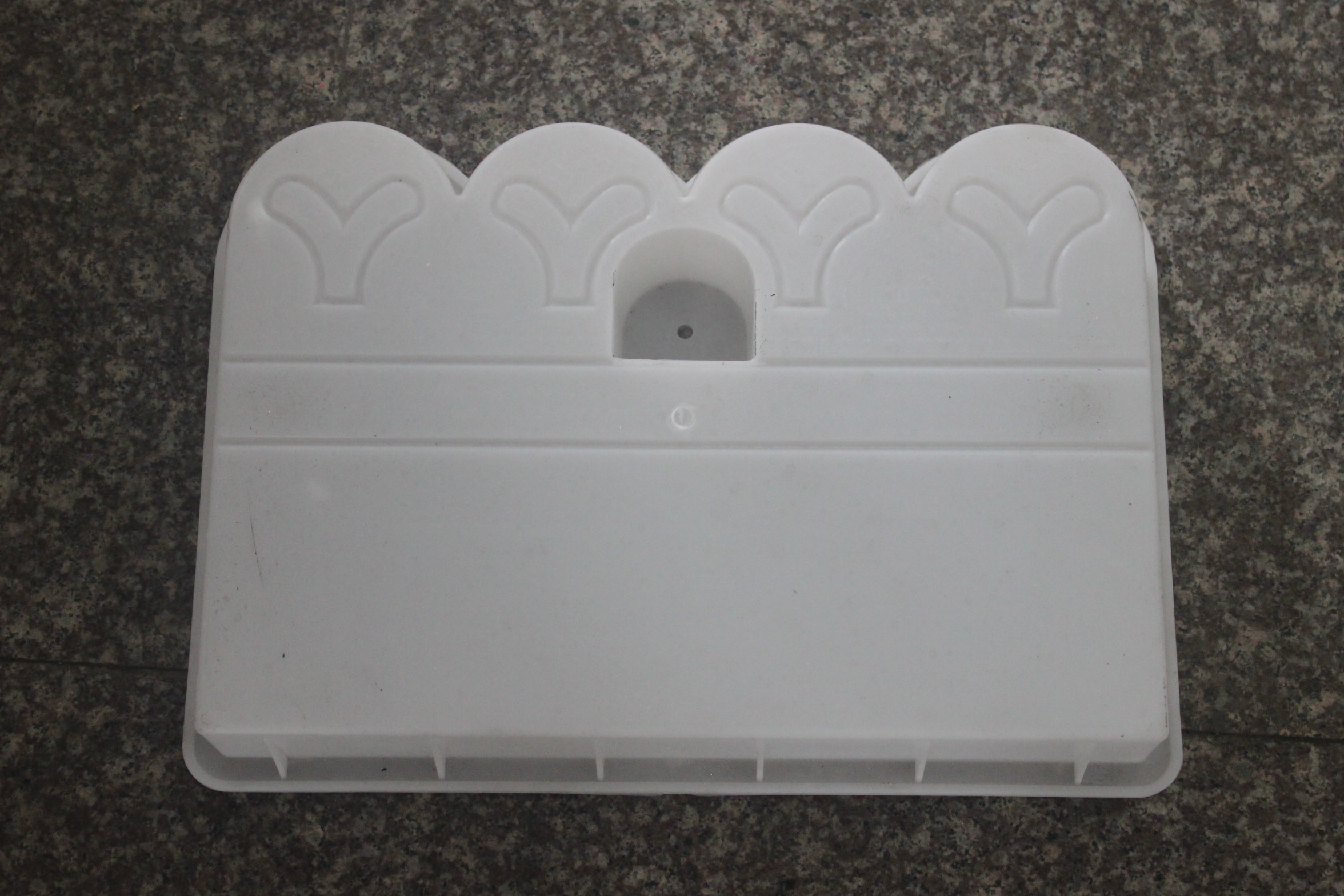 一款比較常規的水泥花池磚模具,模具花紋樣式也是市面上較為常見的人字小腳丫圖案設計,花池磚模具頂部則以圓弧四波浪結構為主,感覺有點像花池柵欄的味道,但是實用性則更強。