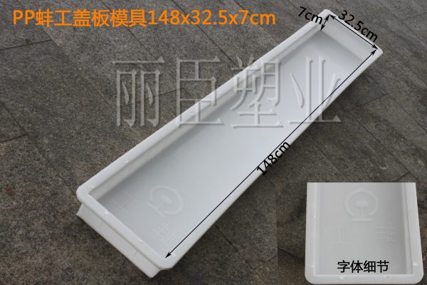 PP聚丙烯材質的高鐵蓋板塑料模具韌性極高,為聚丙烯樹脂顆粒最佳特性,即使在野蠻施工下也能保證其不俗的破損率,最大的缺點就是一旦產品尺寸過大,較為容易變形,所以在儲存聚丙烯高鐵蓋板塑料模具的時候盡量保持平地整齊堆放。
