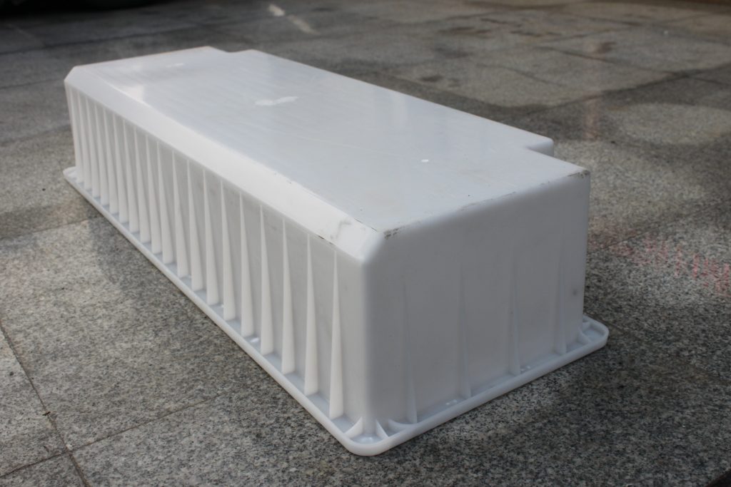 這款混凝土路側石模具采用的是聚丙烯樹脂,韌性較高,不易損壞,是現今國家重點道路采用最為廣泛的一款水泥預制模具。從外觀結構上來看,首先聚丙烯塑料材質的混凝土路側石模具以雙邊缺角設計為主,底部直角邊則以防撞型倒角設計。