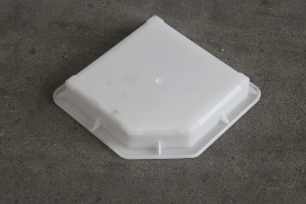樣子比較奇葩的一個塑料彩磚模具,正常結構以正方形外觀,而其中一個角為缺角樣式,相比市場上常見的彩磚模具來說,難得一見,當然究其原因,還是來自于市場需求。