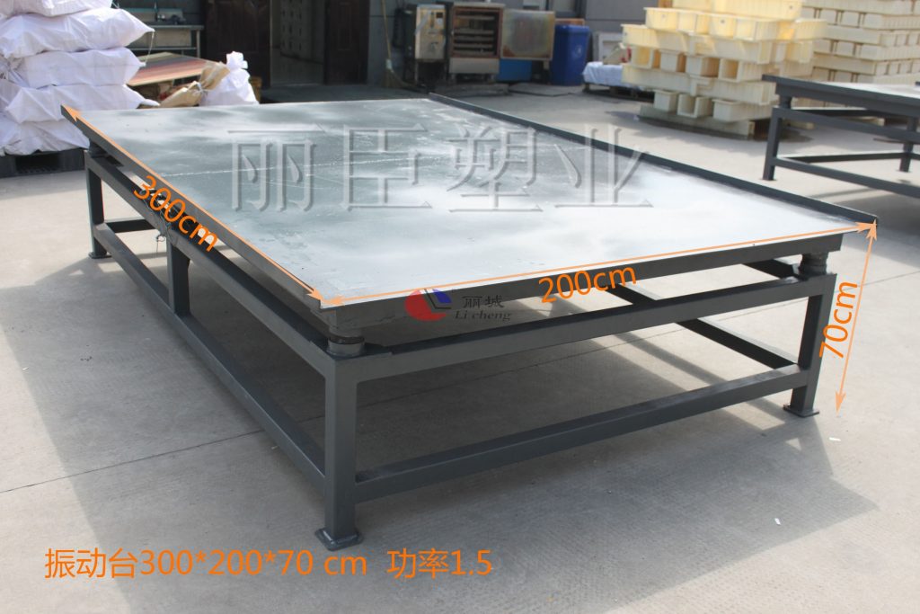 澆筑的塑料模具尺寸不同,在制作振動臺時使用的功率也不一致。如較為大型的護欄、電纜槽塑?;蚨ㄖ频拇笮弯撃>呱?,使用在振動臺下的振動器的功率要有所增大。而對于小型的護坡、蓋板以及路沿石塑料模具這一塊上,使用振動器上的公率要有所減少。除了在模具澆筑過程中可以使用外,后期模具在脫模過程中也能進行使用,實現一機兩用的效果。