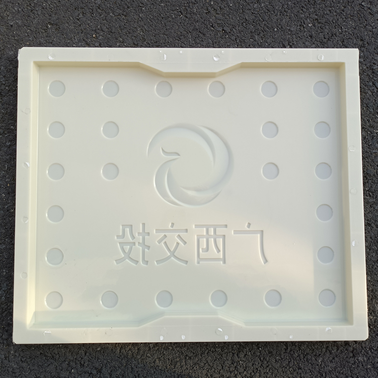 模具主要用于廣西高速,模具擁有三個(gè)尺寸:80x50x2.5、75x50x2.5、60x50x2.5,模具整體都采用ABS材質(zhì)制成,模具板面為缺口圓點(diǎn),帶廣西交通投資集團(tuán)標(biāo)志,底部有“廣西交投”四字,模具尺寸薄,主要用于RPC材質(zhì)的預(yù)制成型。