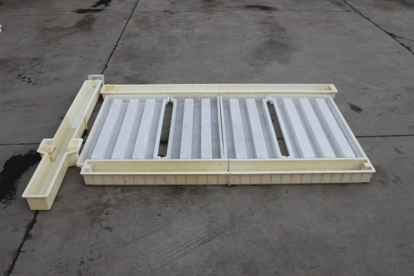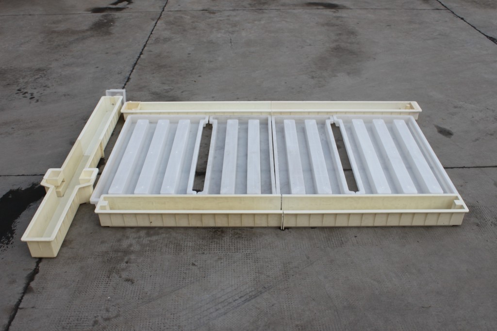 護(hù)欄欄片模具在高速路基護(hù)欄模具里面設(shè)置了4片式設(shè)計(jì),水泥欄片成型為4+3+3+4的組合模具,尺寸分別為149.5*81*9cm2片,149.5*59*9cm2片。在使用整個(gè)路基護(hù)欄模具澆筑水泥制品過(guò)程中,水泥欄片模具為使用率相對(duì)較高的模具,采用PP聚丙烯原料更好的韌性可以更好的提高模具的使用次數(shù)。